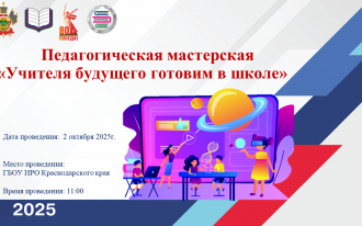 Государственное бюджетное образовательное учреждение дополнительного профессионального образования «Институт развития образования» Краснодарского края информирует о том, что в рамках Большой учительской недели 02 октября 2025 года в 11.00 состоится педагогическая мастерская «Учителя будущего готовим в школе» (далее – Мероприятие), участниками которого станут обучающиеся педагогических классов, студенты педагогических колледжей, ВУЗов, в том числе уже осуществляющих педагогическую деятельностьПодробнее…