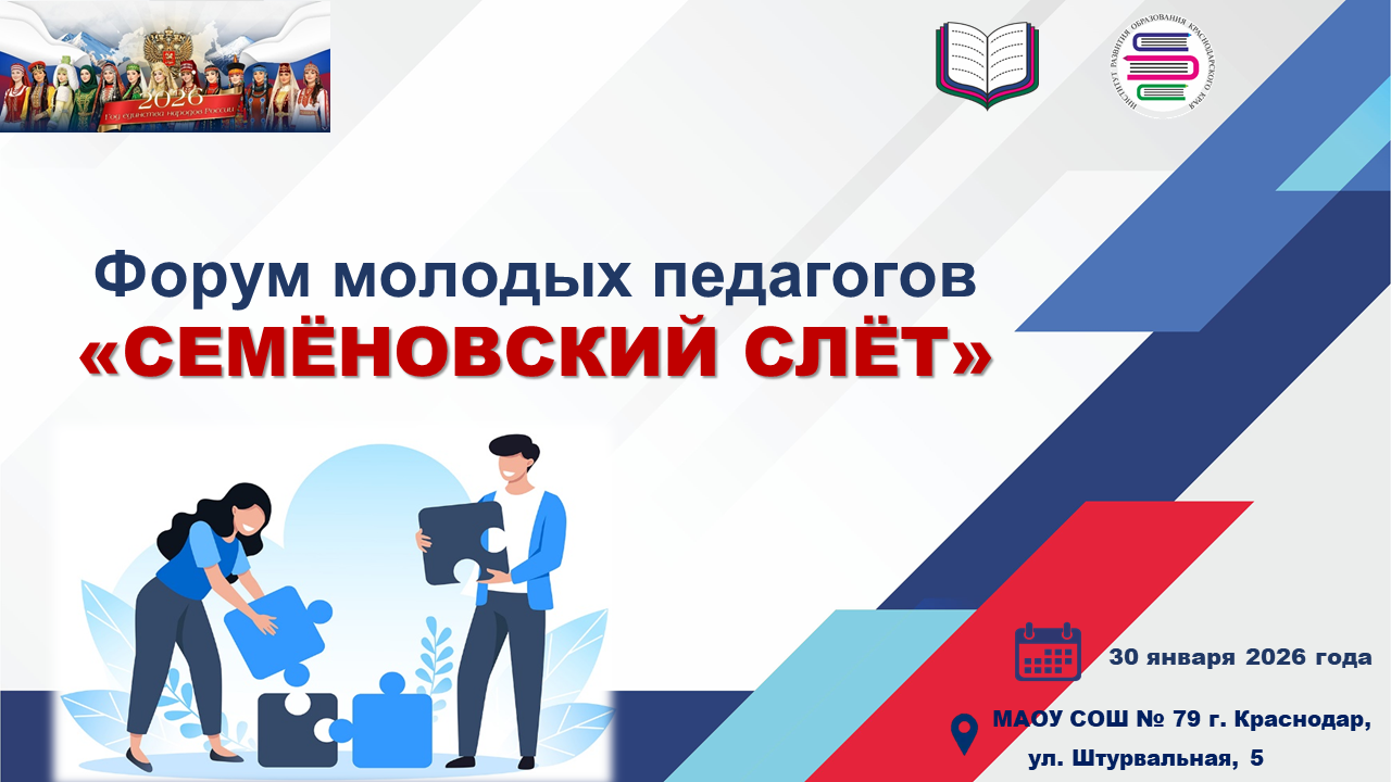Государственное бюджетное образовательное учреждение дополнительного профессионального образования «Институт развития образования» (далее – ГБОУ ИРО Краснодарского края) информирует о проведении форума молодых педагогов Краснодарского края «Семеновский слет» (далее – Форум).